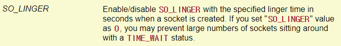 JMeter TCP Sampler 옵션 중 SO_LINGER에 TIME_WAIT에 대한 설명이 있다.